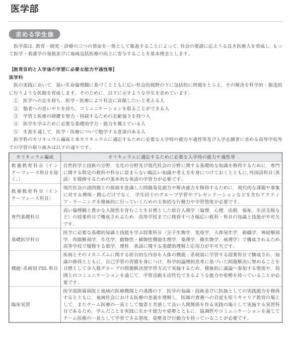 ※ 各大学が旧課程履修者に対する配慮がある場合においても、医学部受験ラボでは記載していません。配慮内容の詳細については、各大学の募集要項などで確認してください。