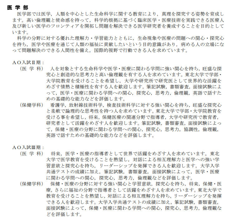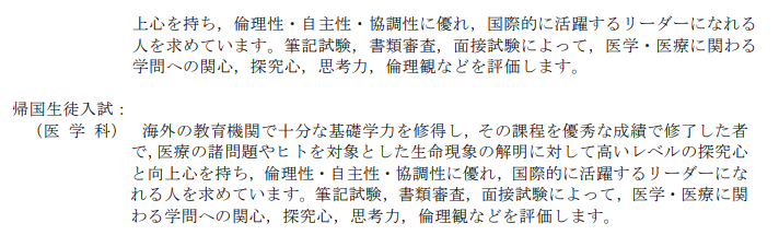 | 面接 =医師としての適性を判断する。小作文を課し出願書類とともに参考にする。 | 400点 |